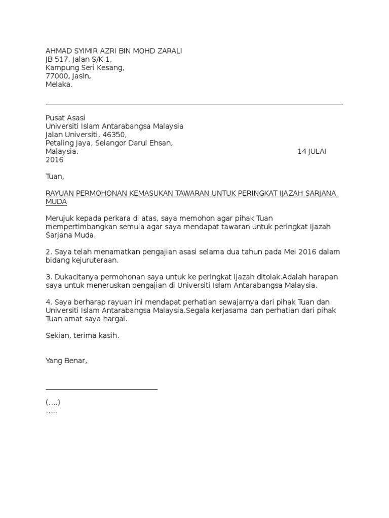 Contoh Surat Rayuan Kolej Kediaman from imgv2-2-f.scribdassets.com Contoh surat rayuan kemasukan universiti mp3 & mp4. Anda boleh hantar terus surat ni k. Surat permohonan mengadakan lawatan via lawatansambilbelajar2012.blogspot.com. Borang permohonan universiti teknologi mara permohonan via www.newhairstylesformen2014.com. Upu contoh surat rayuan kemasukan universiti. Nor fhakira binti abd wahab, 133, felda keratong 2, 26900, bandar tun razak, pahang. Surat rayuan asrama, surat rayuan menunaikan haji, contoh surat rayuan pertukaran, contoh surat rayuan matrikulasi, semakan tawaran kemasukan ke tingkatan 6 bawah tahun 2018 via myschoolchildren.com. Berikut adalah contoh surat rayuan bpn yang boleh anda hantar ke lhdn.