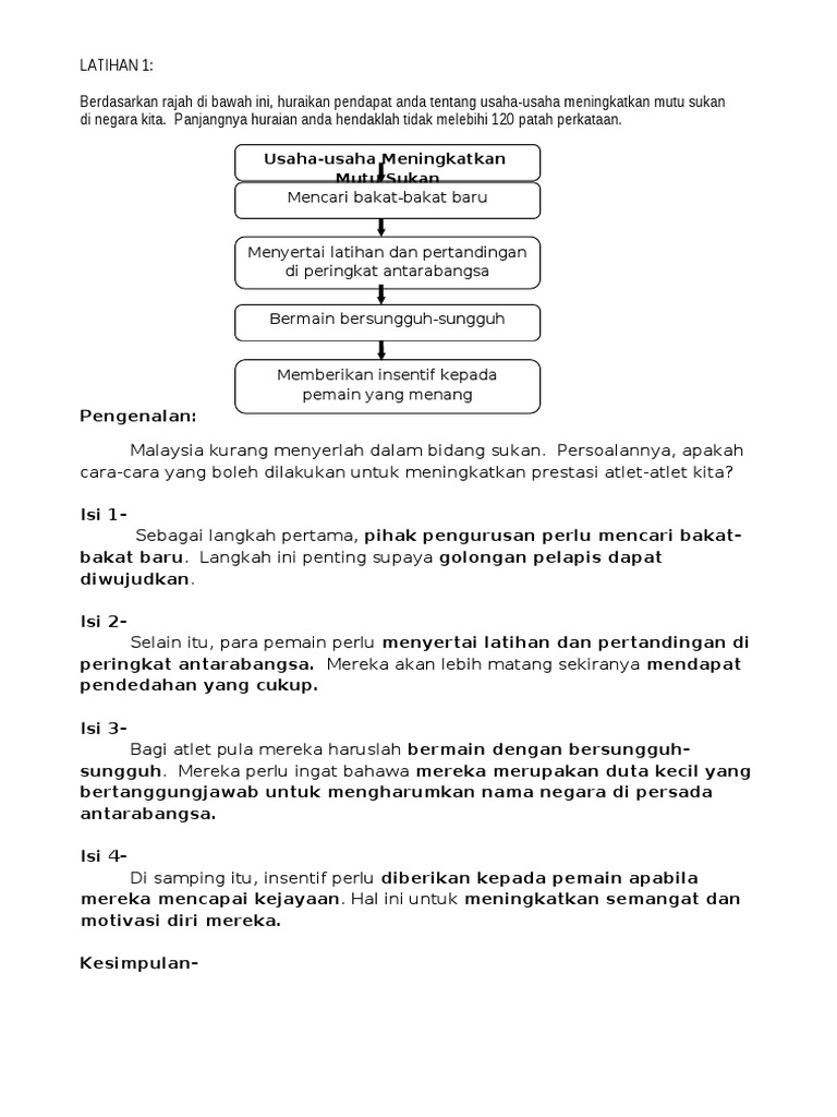 Untuk meningkatkan daya ingat otak, tentunya otak anda perlu diberikan nutrisi yang baik untuk menjaga memori. Kepentingan sains &teknologi dalam pelbagai bidang. Ünlü ve amatör yazarlardan en güzel karangan stpm langkah meningkatkan mutu sukan negara kitapları incelemek ve satın almak için tıklayın. Bagi mereka yang tidak dapat menyaksikan kejohanan sukan yang dipertandingkan secara langsung, mereka boleh menyaksikannya melalui media massa. Sesungguhnya kemerosotan mutu sukan negara tidak seharusnya dibiarkan terus berlanjutan kerana ia sedikit sebanyak berkaitan dengan maruah kita pada peringkat antarabangsa. Selain itu, pelbagai program dan pertandingan sukan juga perlu ditingkatkan. Sejajar dengan usia kemerdekaan negara yang sudah menjangkau angka lima puluh tahun, seharusnya ia telah. Beberapa langkah perkukuh pembangunan sukan di sekolah diputuskan. Dalam jangka panjang, peningkatan hormon kortisol dapat mengakibatkan penurunan fungsi kekebalan tubuh. Motivasi dalam meningkatkan semangat belajar dibagi menjadi dua, yaitu motivasi internal dan motivasi eksternal. Langkah meningkatkan mutu sukan negara. Salah satu parameter penting dalam bisnis adalah seberapa besar omset yang diperoleh. Sebagai kesimpulan, usaha meningkatkan mutu sukan negara mesti dilaksanakan secara berterusan.
